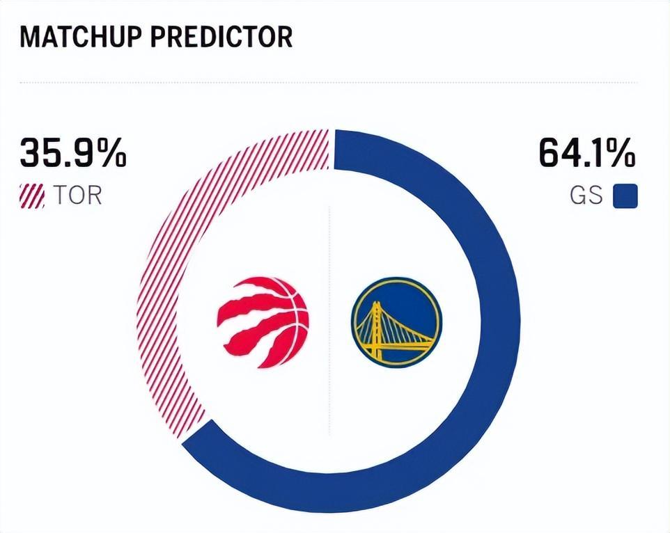 赛前,美媒ESPN对本场比赛进行了胜率预测,猛龙的胜率意外仅有35.9%,劣势明显,勇士队的胜率则高达64.1% 。